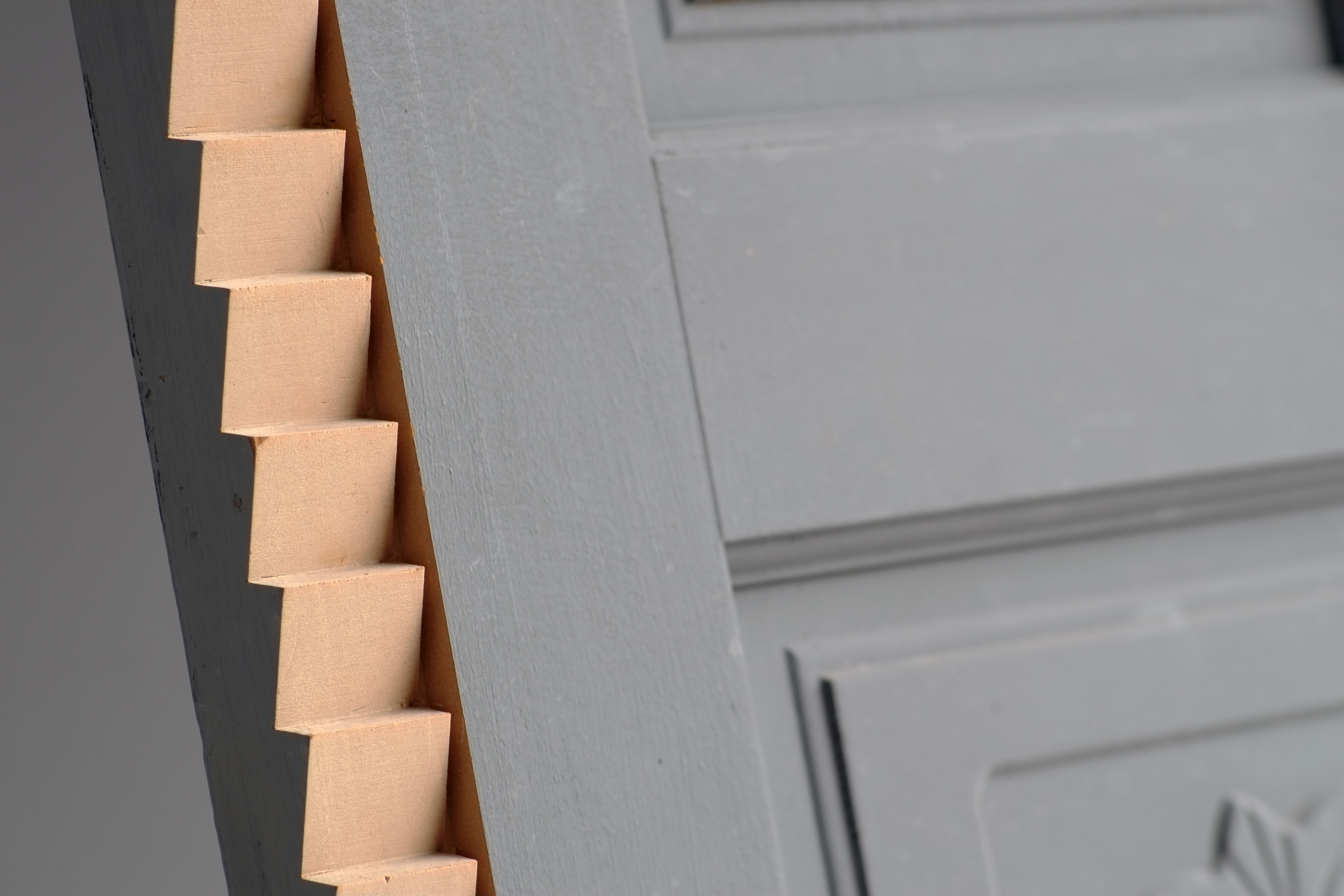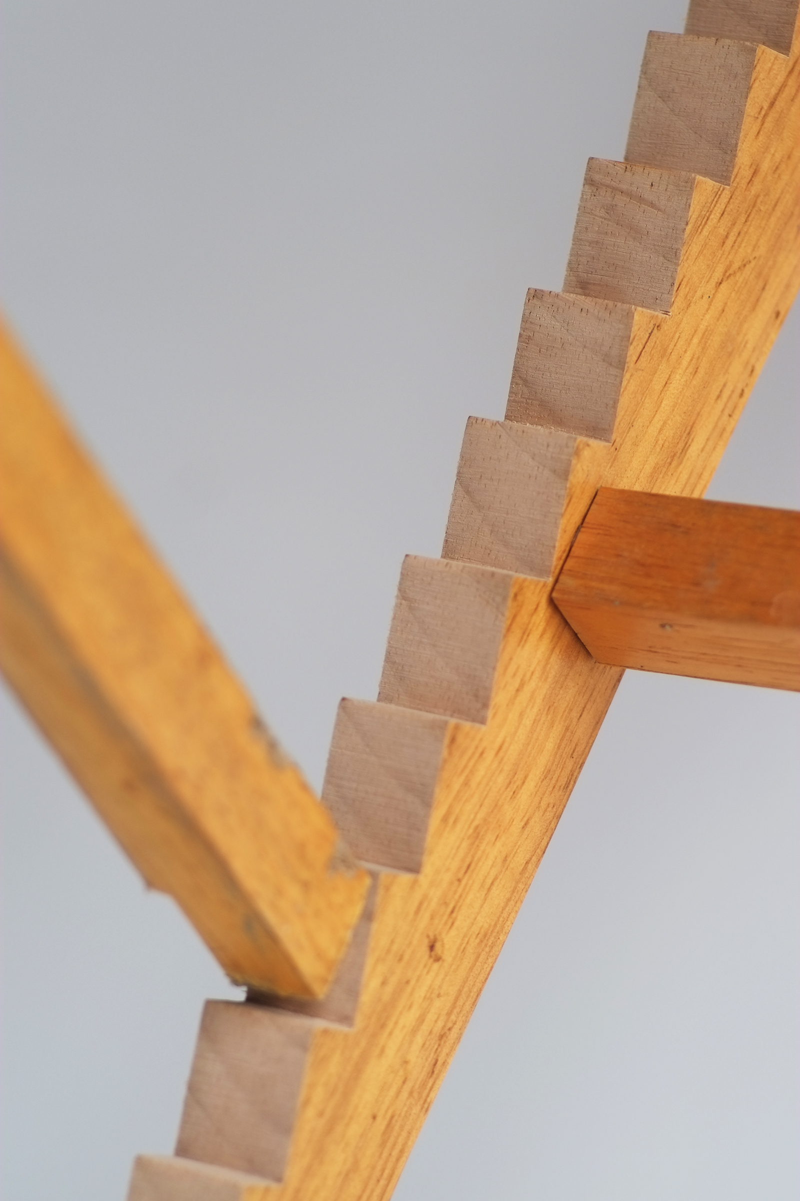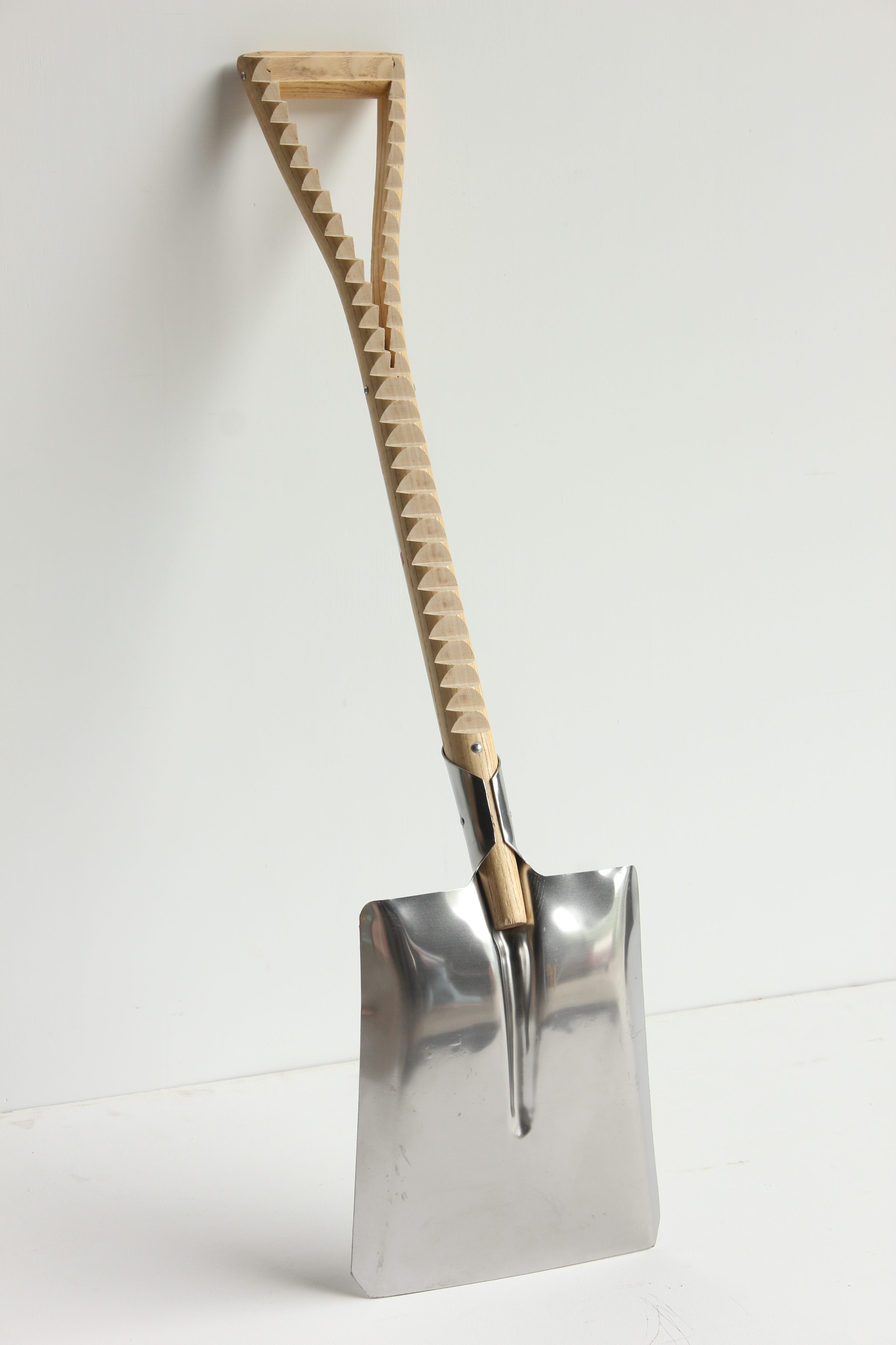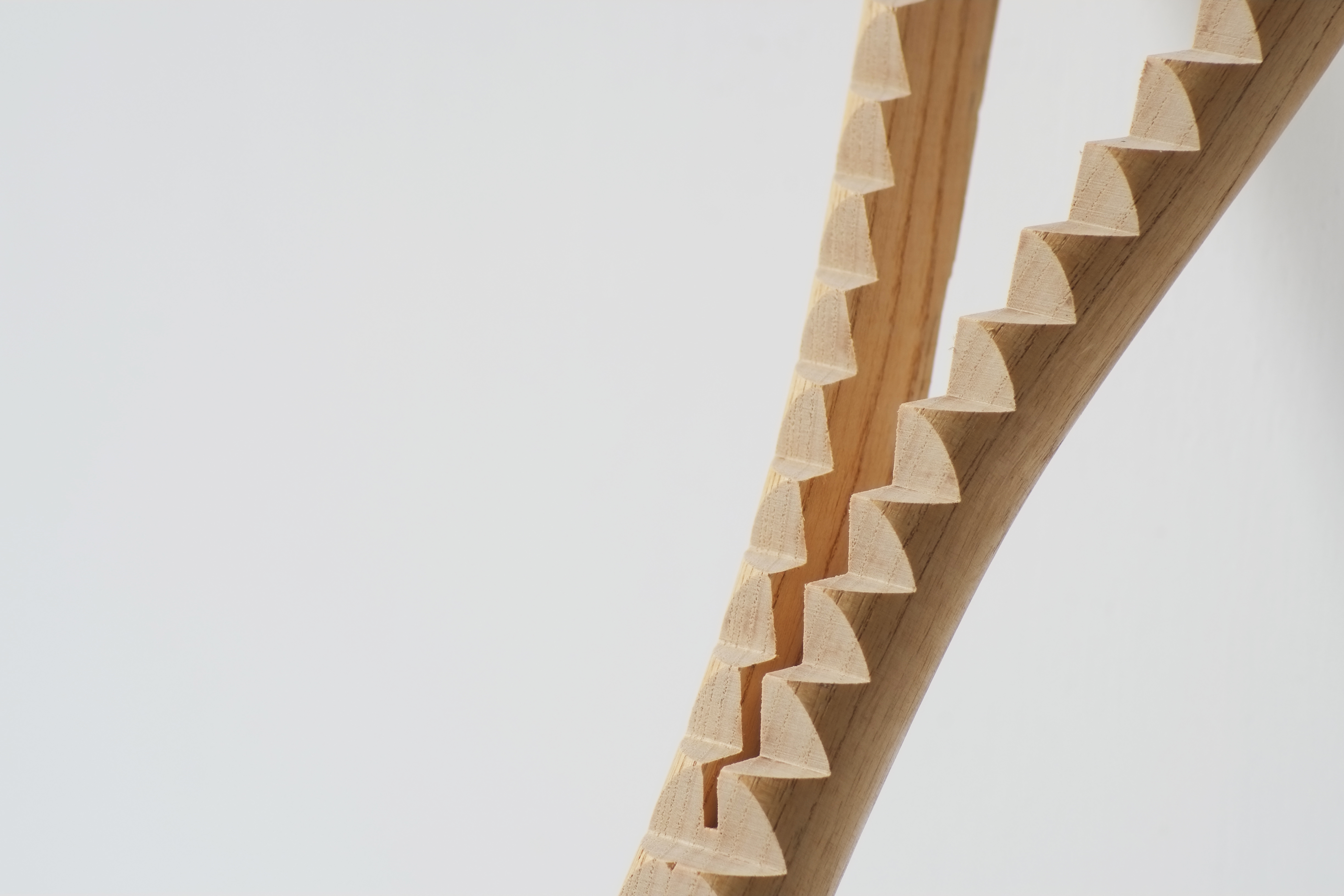 我想試著在現成物作為藝術的基礎上,加入自己鑿刻的痕跡。以階梯比喻空間,讓物件與空間看似衝突的二者並存。