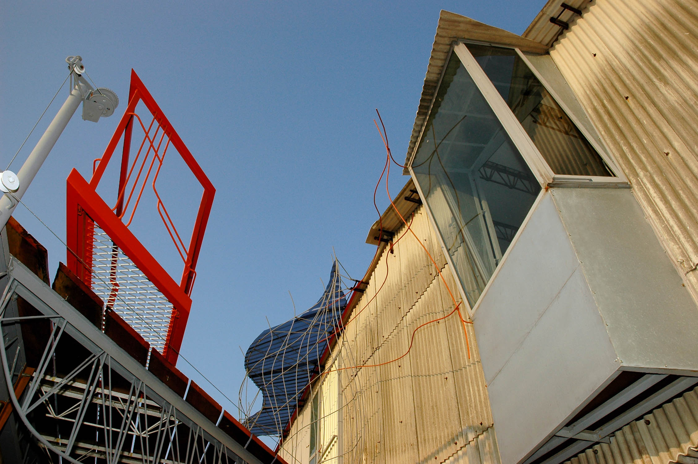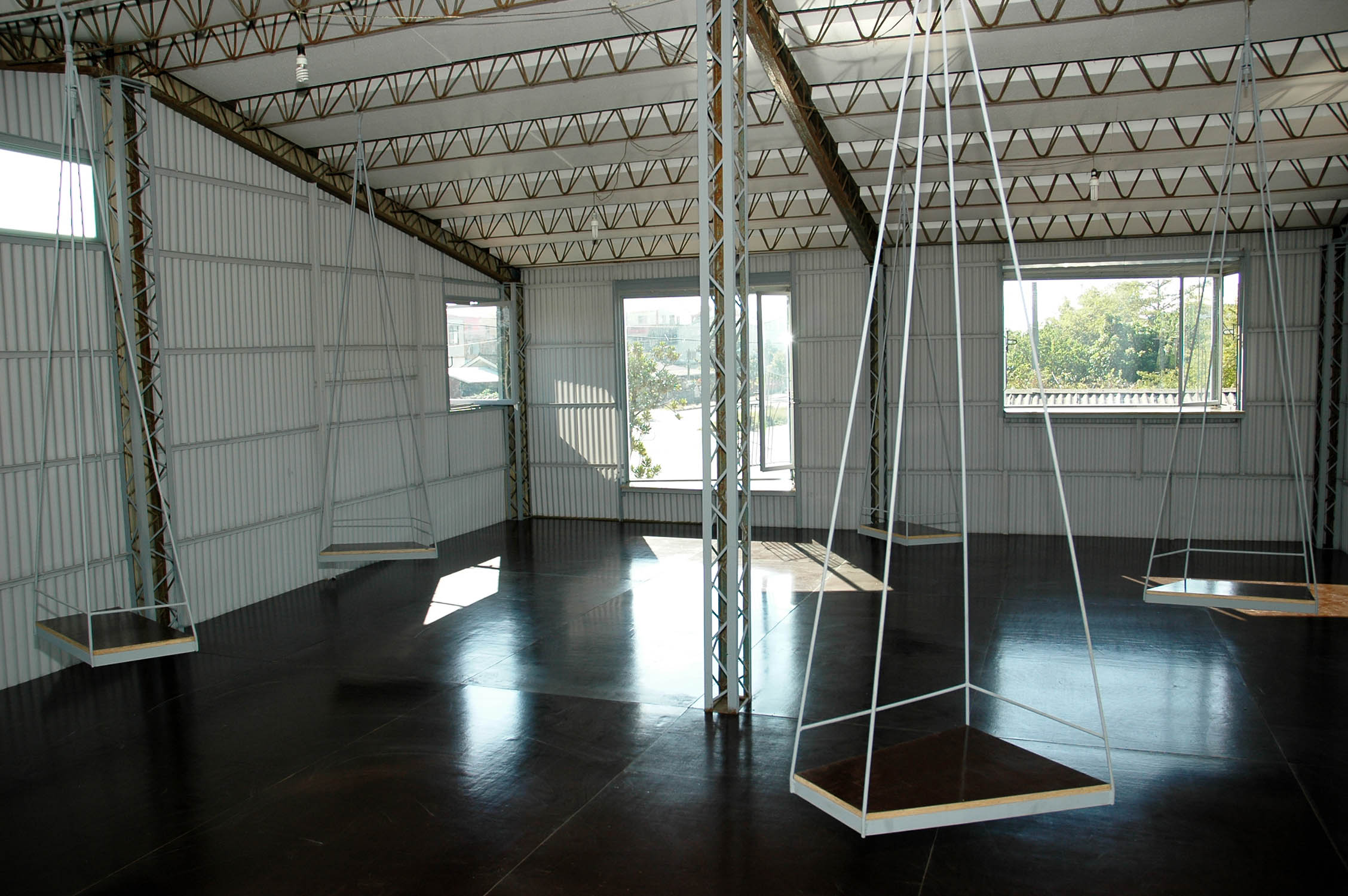 在這個作品計畫裡面,我主要所關心的是界線和內外的關係。以台灣違建和騎樓的現象作為發想,探討空間界線進而引申到所有事物被定義的界線。此作品為大型空間裝置創作的開端,研究了許多基本機械原理與空間元素結合的變化。